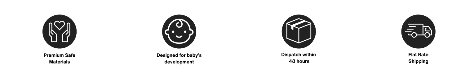 High contrast is most impactful in the first 0–6 months when your baby's vision is still developing. From around 3 months, babies begin to see more colour and detail — but high contrast continues to support focus, engagement and sensory play right through to 24 months. Our products are designed to grow with your baby, offering developmental benefits well into toddlerhood.
